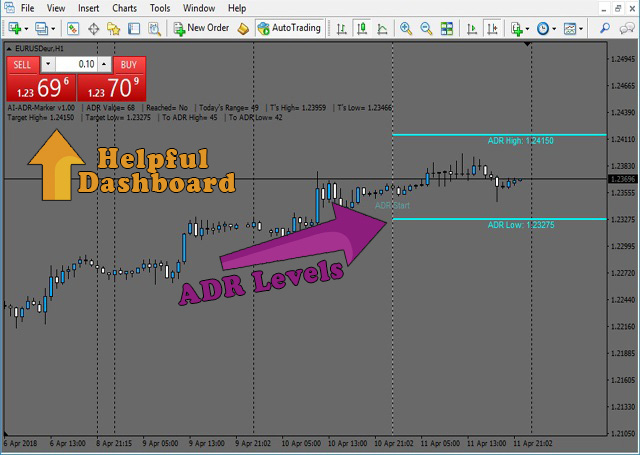 ADR Marker is also useful for trading intraday reversals. If a currency pair reaches the top of a daily range, then it could be due for a reversal, and you could capture a potential retracement.